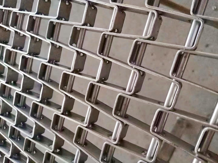 馬蹄鏈由不銹鋼板條經(jīng)過模具的加工成型,再穿上直徑3mm以上的支軸連接而成。網(wǎng)帶自重輕,網(wǎng)孔空隙大,網(wǎng)面平整,運行平穩(wěn),不會走偏。可作洗滌、干燥、冷卻、熱處理的輸送線。