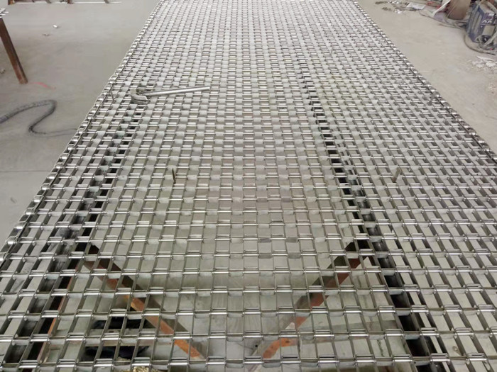 馬蹄鏈由不銹鋼板條經(jīng)過模具的加工成型,再穿上直徑3mm以上的支軸連接而成。網(wǎng)帶自重輕,網(wǎng)孔空隙大,網(wǎng)面平整,運行平穩(wěn),不會走偏。可作洗滌、干燥、冷卻、熱處理的輸送線。